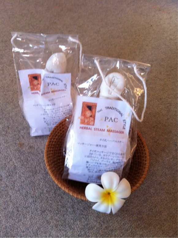 タイ古式マッサージで古くから使用されている道具です。乾燥ハーブなどを布で包んだもので、ハーブの成分を体に浸透させ、代謝を促して毒素を取り除き筋肉のコリを和らげていきます。